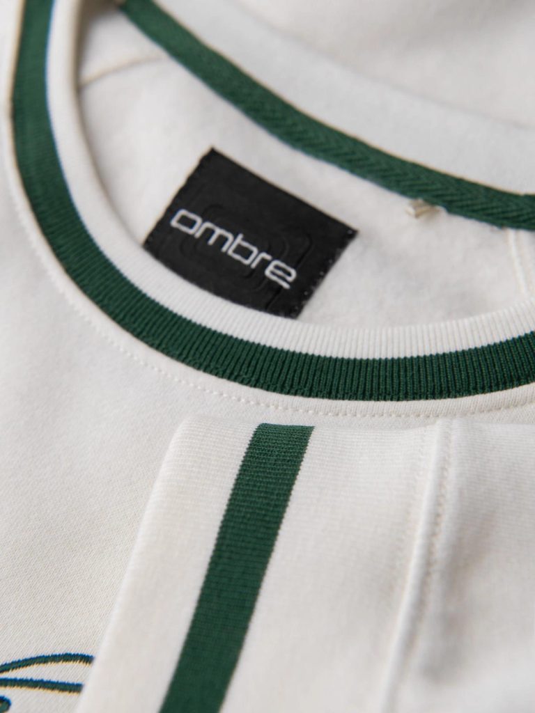 - mikina má kontrastní barvy na výstřihu, rukávech a spodní části.