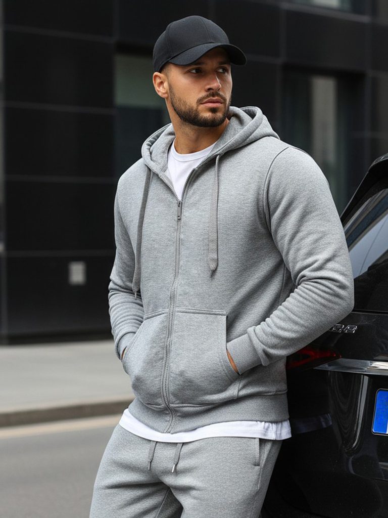 Sportovní pánská moderní mikina je ideální na běžné nošení. Součástí mikiny je praktická kapuce i dvě vnější kapsy. Kapuci lze regulovat šňůrkou. Trendy mikina se zapínáním na zip obsahuje módní lem na rukávech i ve spodní části. Mikinu noste bez omezení na sport i do města.