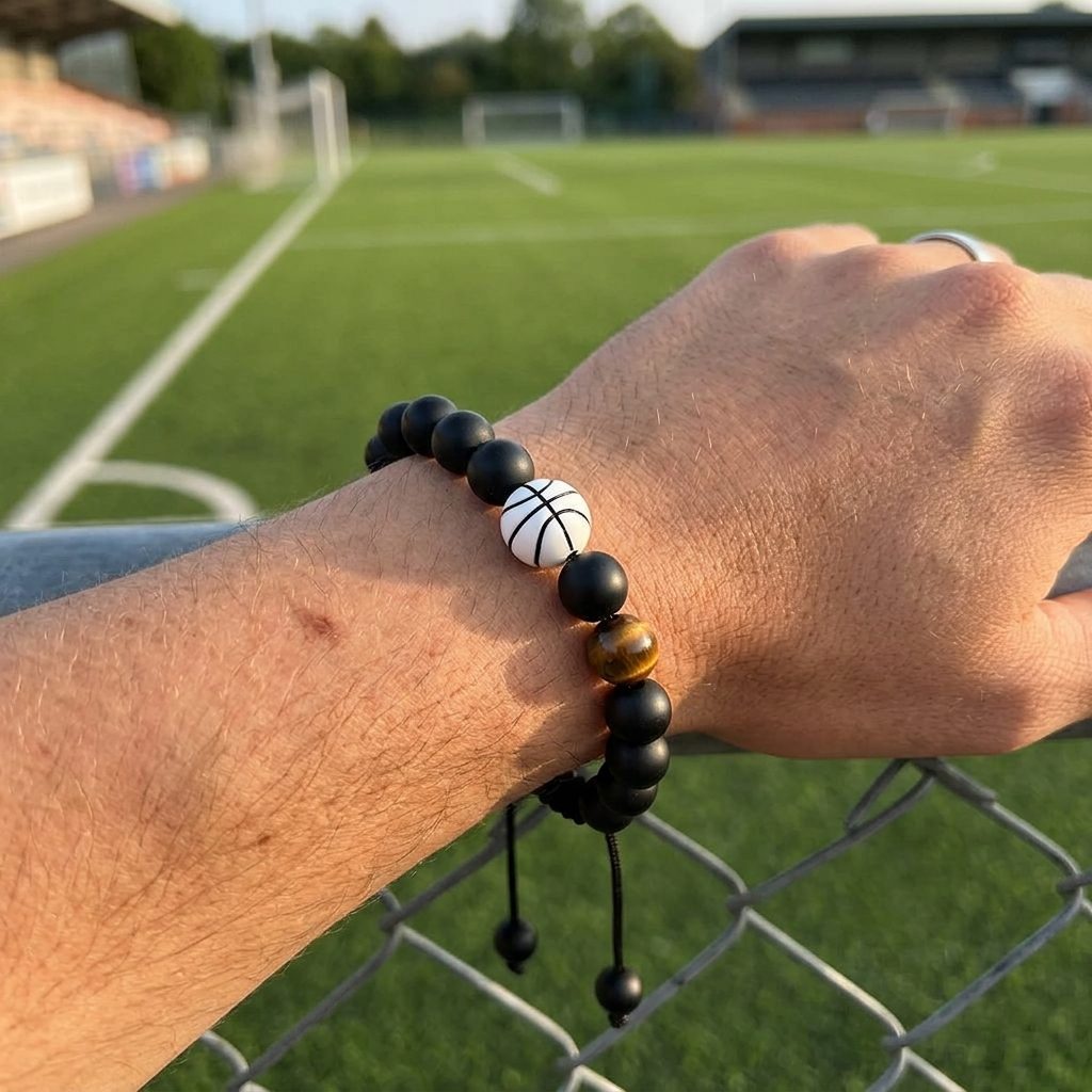 Stylový černý korálkový pánský náramek s kontrastními korálky. Nastavitelná velikost za pomoci stahovacích šňůrek. Tento model pánského náramku zaujme každého.