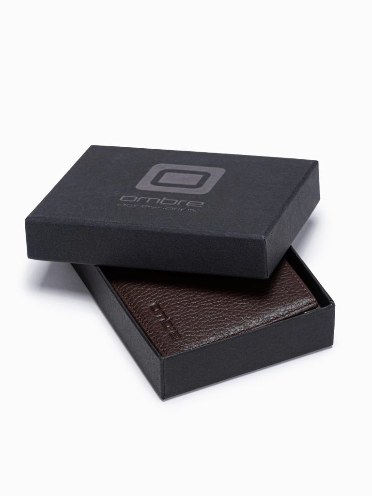Peněženka disponuje logem Ombre na přední straně. Obsahuje přihrádku na mince, jakož i prostor pro průkazy. Peněženka má dvě přihrádky na bankovky a přihrádky na kreditní karty či vizitky.