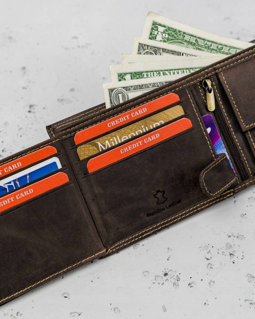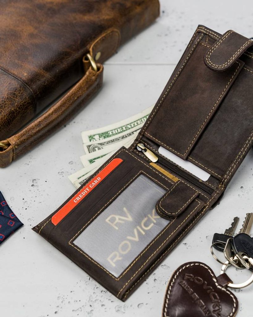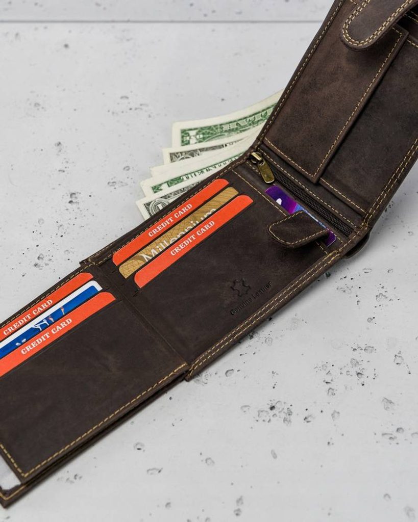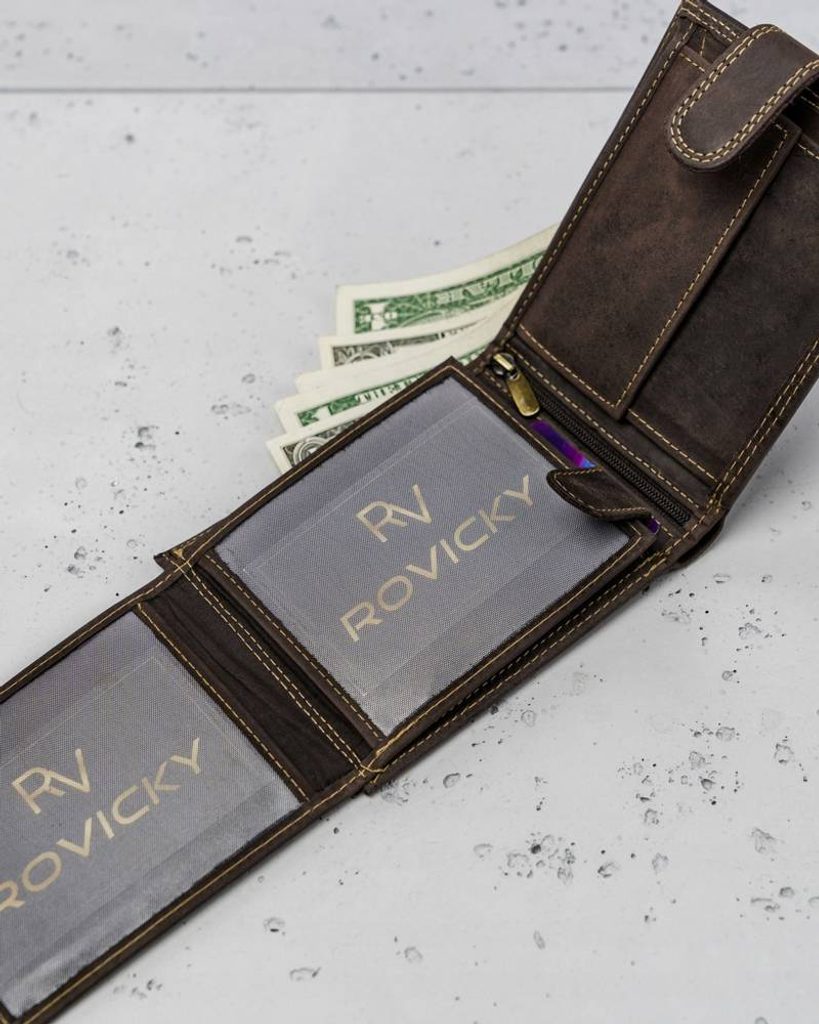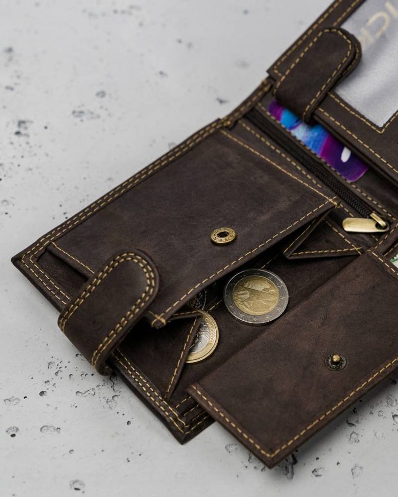 Kožená pánská peněženka vyrobena z kvalitního materiálu. Peněženka v trendy designu disponuje dostatečným úložným prostorem. Součástí peněženky jsou přihrádky na bankovky, vizitky, kreditní karty a mincovník.