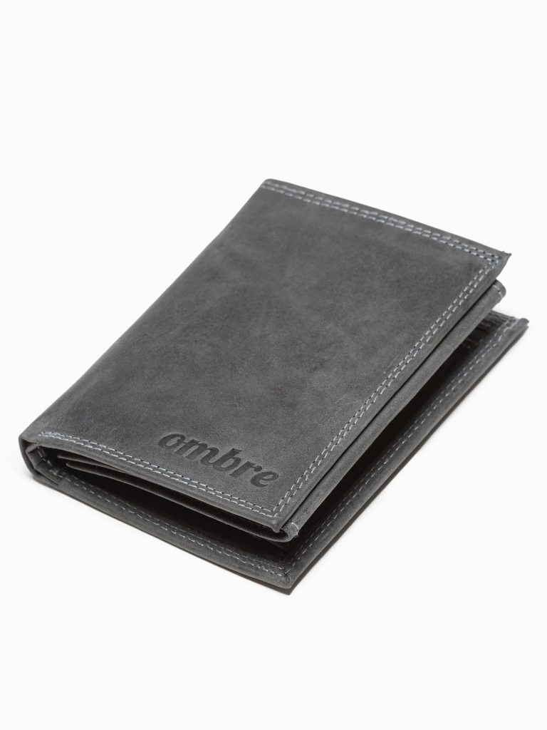 Vertikální peněženka se zapínáním na cvoček disponuje logem Ombre na přední straně. Obsahuje přihrádku na mince se zapínáním na cvoček i prostor pro průkazky. Součástí jsou dvě přihrádky na bankovky a prostor na kreditní karty či vizitky.