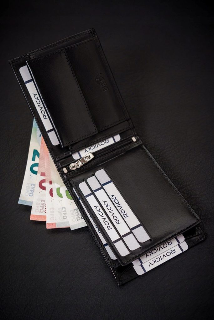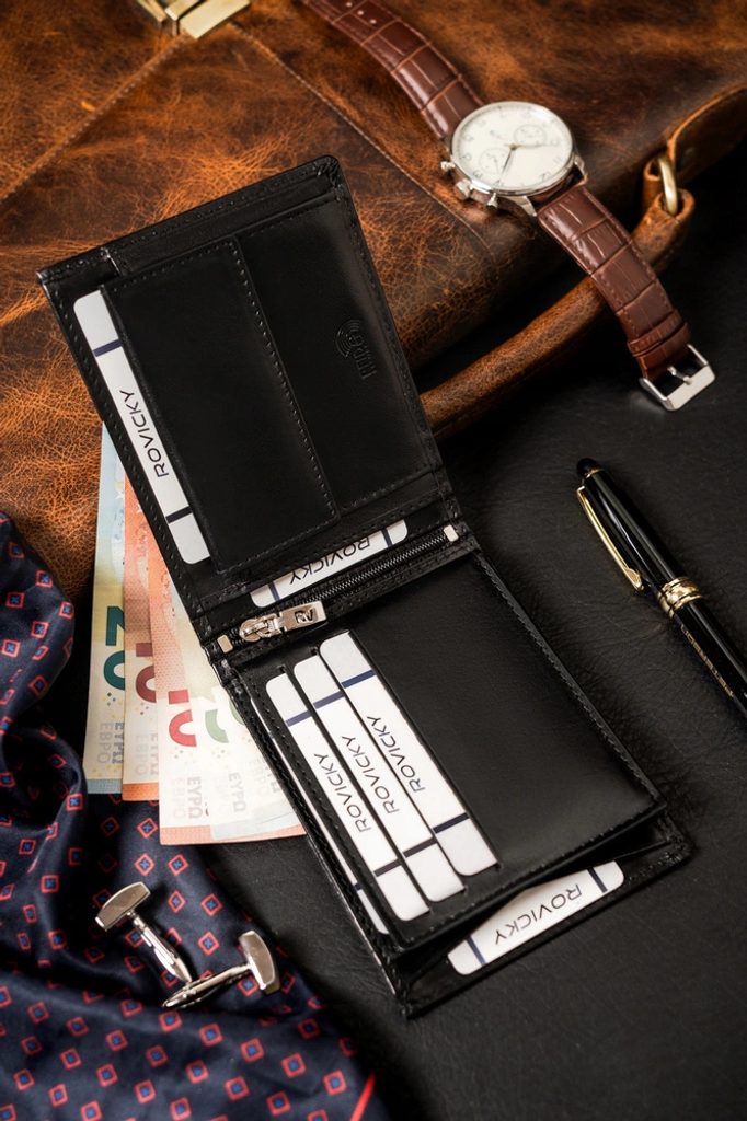 Peněženka v elegantním designu, vyrobená z kvalitní kůže. Model peněženky je orientován na šířku. Tento model je bez přezky. Vnitřní prostor má více přihrádek, což ocení každý, kdo má rád pohromadě své platební karty, průkazy a další věci. Samozřejmostí je ochrana proti RFID.