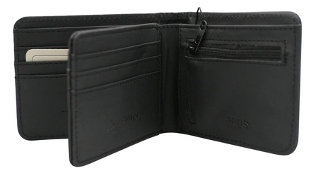Peněženka bez přezky v elegantním černém provedení je vyrobena z vysoce kvalitního materiálu - kvalitní ekokůže. Model peněženky je orientován na šířku. Vnitřní prostor má více přihrádek, což jistě ocení každý, kdo má rád pohromadě své platební karty, průkazy a další věci. Samozřejmostí je ochrana RFID.