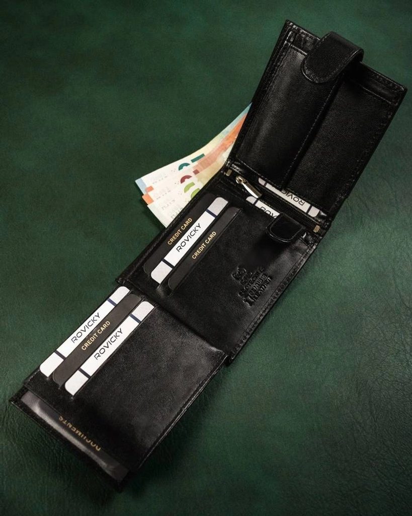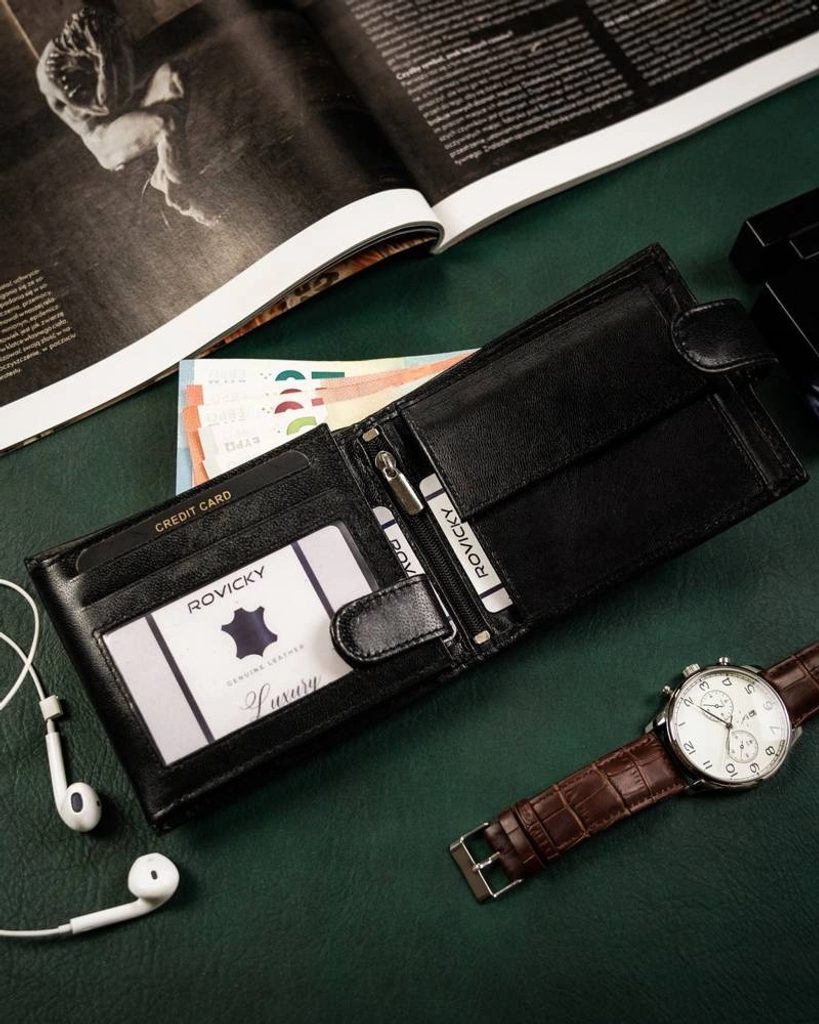 Marie Pokorna, 07.02.2026Kožená pánská peněženka s přezkou orientovaná na šířku vyrobená z kvalitního materiálu. Peněženka v trendy designu disponuje dostatečným úložným prostorem. Součástí peněženky jsou přihrádky na bankovky, vizitky, kreditní karty, mincovník a RFID ochrana.