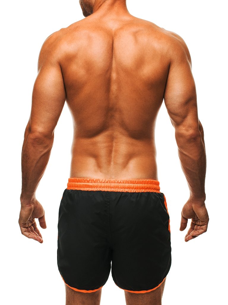Pánské plavky v černé barvě jsou ideálním společníkem k moři, k rybníku i letnímu sportu. V pase guma v zářivé pomerančové barvě se šňůrkami v černé barvě, která slouží ke stažení. Po bocích dvě otevřené kapsy lemované oranžovou barvou. Plavky mají oválný střih lemovaný opět oranžovou barvou. Vysoce kvalitní materiál, který vás nebude nijak omezovat.