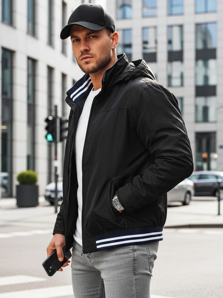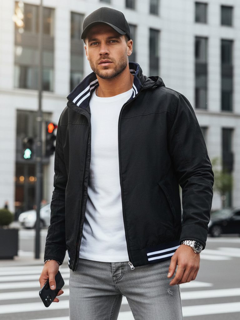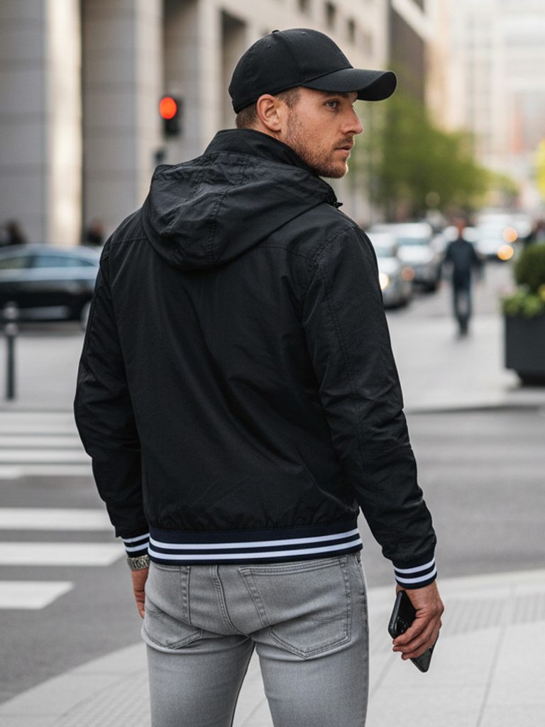 - neodnímatelná kapuce skrytá v límci, nastavitelná pomocí stopek
