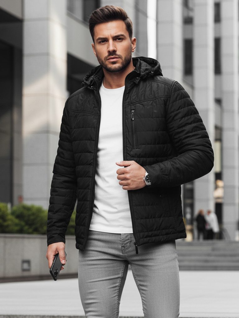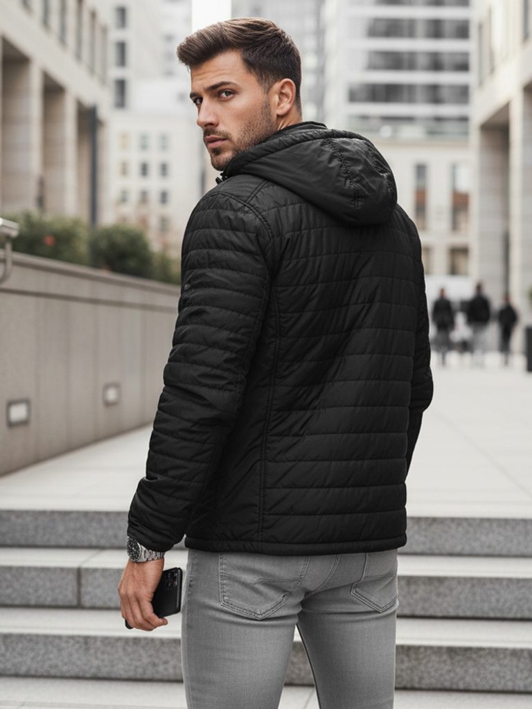 - pánská přechodná prošívaná bunda s kapucí