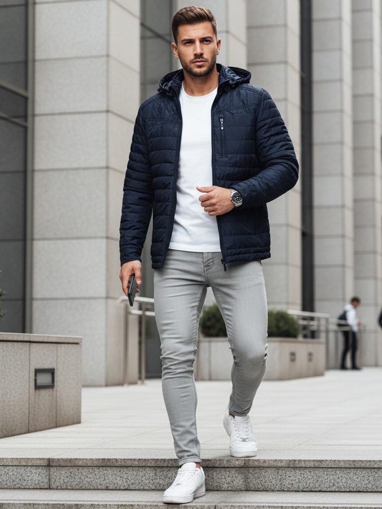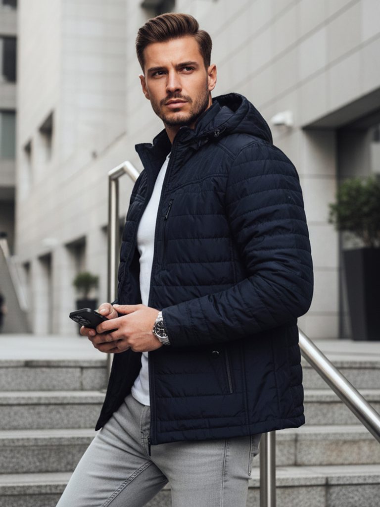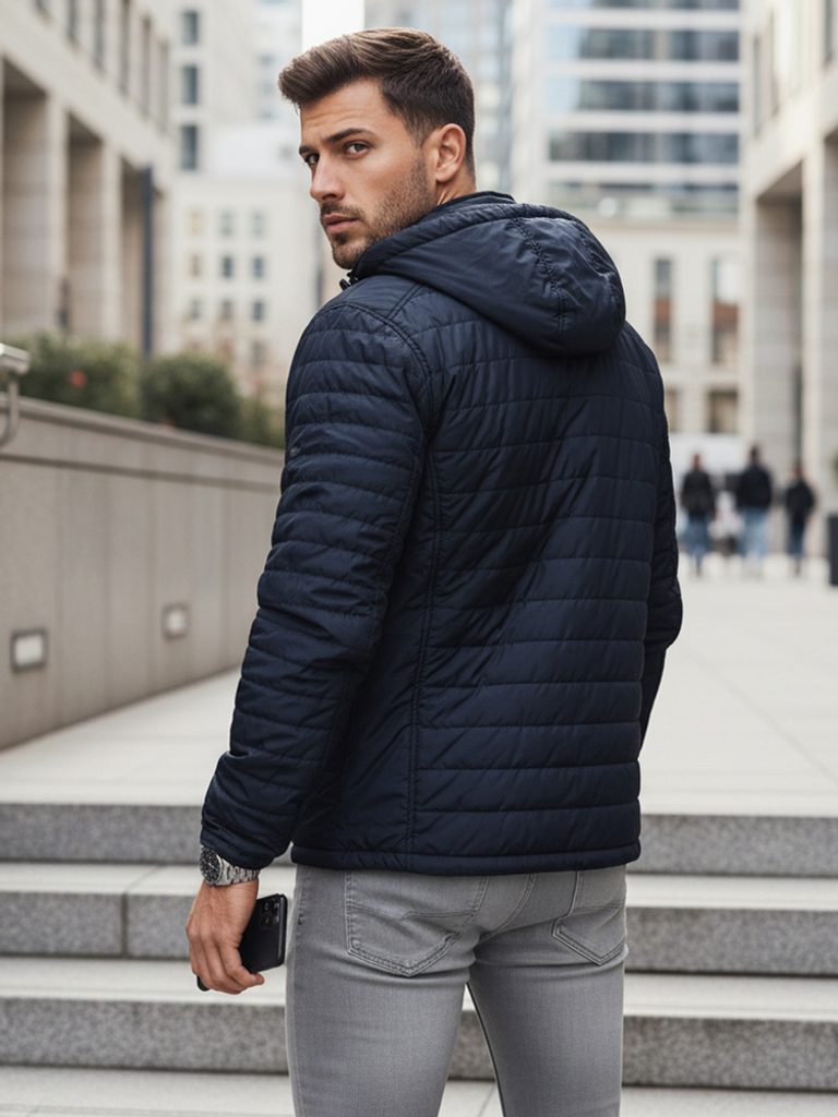 - pánská přechodná prošívaná bunda s kapucí