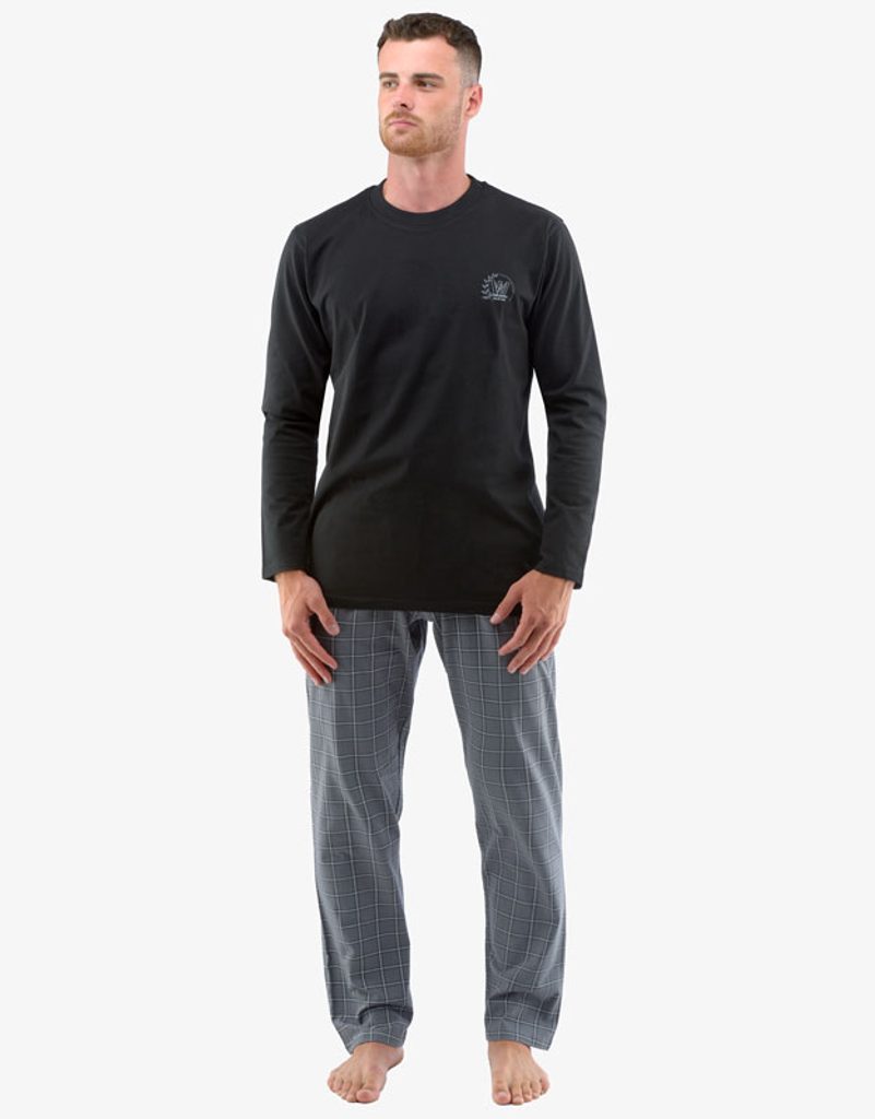Hana Černošková, 08.12.2025Pohodlné pánské pyžamo je složeno z trička s dlouhým rukávem a z volných, dlouhých kalhot. Tomuto pánskému pyžamu opravdu nechybí styl! Součástí dlouhého trička je kulatý výstřih a decentní potisk na levé straně. Spodní díl je obohacený o elegantní vzor.