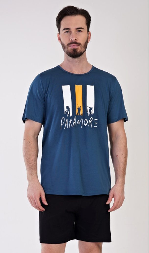Pyžamo je vyrobeno z bavlny. Úplet je vhodný pro ty, kteří vyhledávají přírodní materiály. Na jednobarevném tričku s kulatým výstřihem je nápis PARAMORE a obrázek hudební skupiny. Šortky jsou bez kapes, mají elastický pas a šňůrku na stažení. Vhodné jako dárek pro ty, kteří milují hudbu.