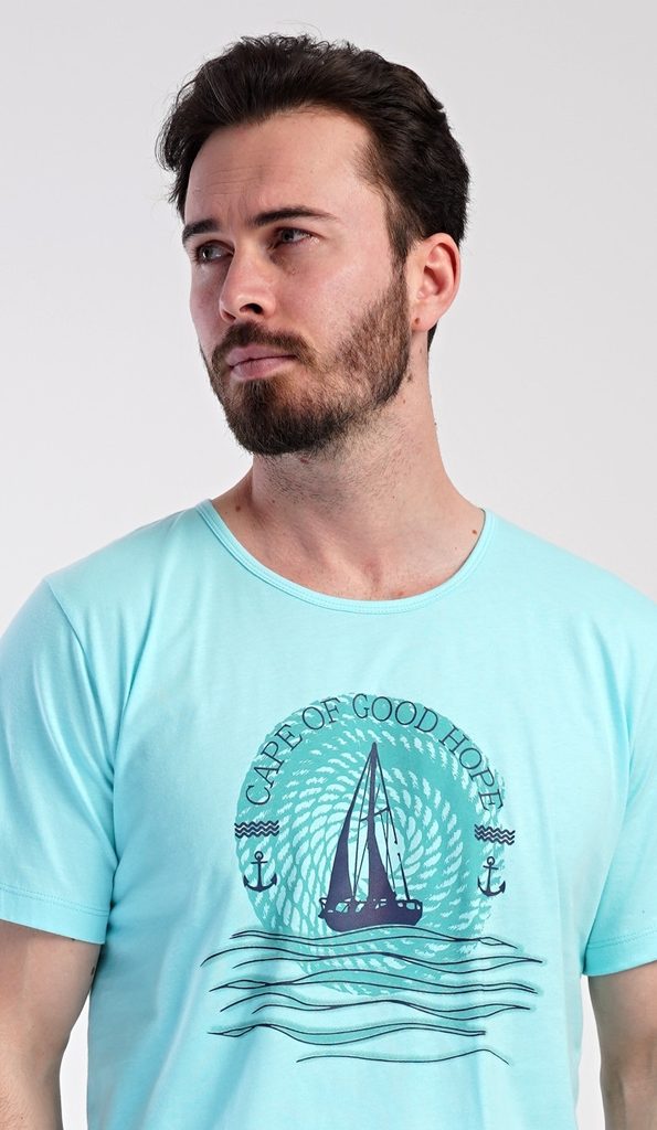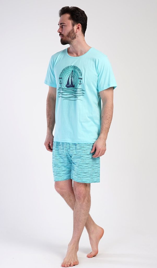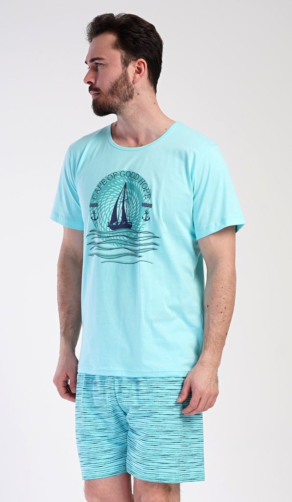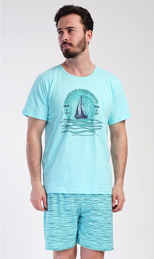 Pyžamo je vyrobeno z bavlny. Úplet je vhodný pro všechny, kdo hledají přírodní materiály. Tričko s kulatým výstřihem je potištěno originálním potiskem plachetnice. Šortky jsou bez kapes, mají gumu a šňůrku ke stažení. Vhodné jako dárek pro ty, kteří milují moře a cestování.
