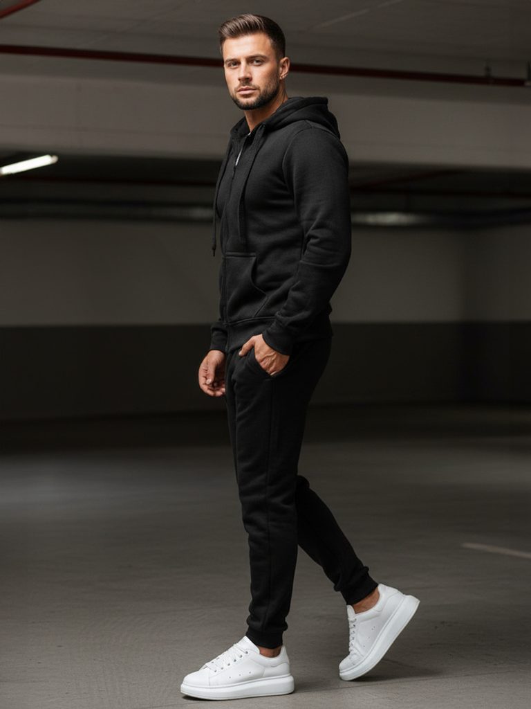 Eva Šášová, 17.02.2026Tepláková souprava v jednoduchém provedení. Souprava je vyrobena z měkkého a příjemného materiálu. Obsahuje mikinu se zapínáním na zip s kapucí. Dvouvrstvá kapuce disponuje stahovací šňůrkou, jejímž prostřednictvím lze regulovat velikost. V přední části mikiny se nacházejí dvě vnější kapsy. Spodní část i rukávy jsou zakončeny lemem. Tepláky typu jogger mají dvě přední kapsy. Pás tepláků lze regulovat šňůrkou. Spodní část tepláků a pás je ukončen lemem. Tepláková souprava je vhodná pro každodenní nošení.
