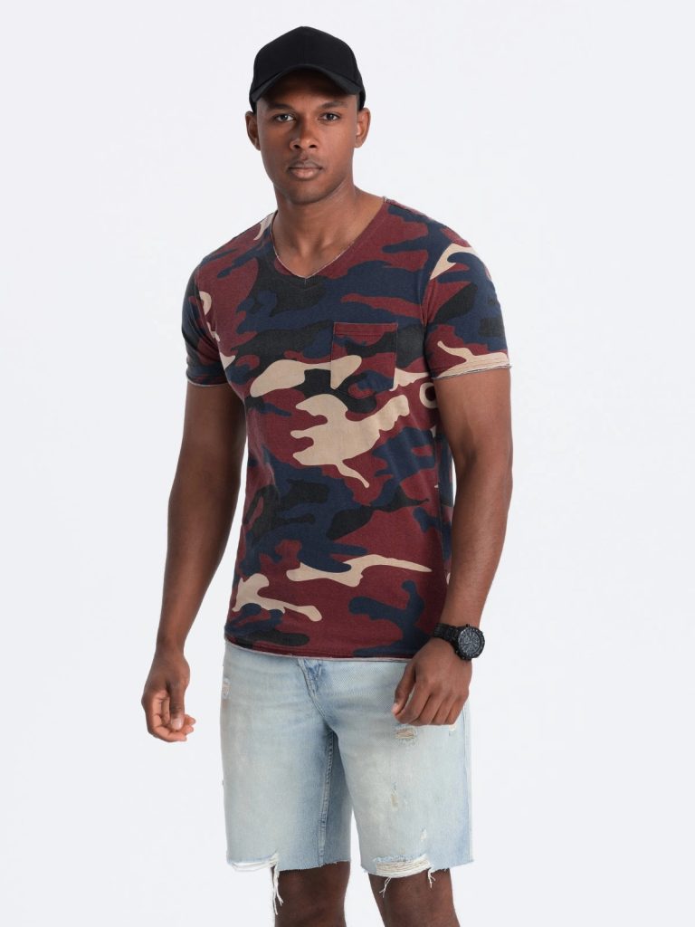 Triko s krátkým rukávem je vyrobeno z příjemného materiálu, z vysokého podílu bavlny. Disponuje véčkovým výstřihem a náprsní kapsou. Součástí modelu je stylový maskáčový potisk. Triko je vhodné pro běžné nošení. Doporučujeme jej kombinovat s kalhotami, případně tepláky z naší nabídky.