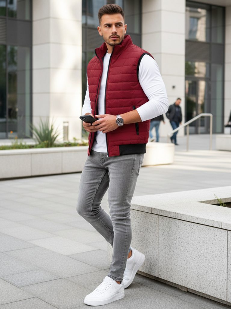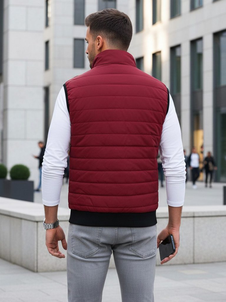 Prošívaná vesta bez kapuce disponuje zapínáním na zip. Vesta obsahuje dvě vnější kapsy na zip. Otvory na ruce jsou ukončeny elastickým lemováním. Spodní část je zakončena lemem. Součástí je podšívka a vyvýšený límec, který zahřeje. Model doporučujeme kombinovat s džíny z naší nabídky.