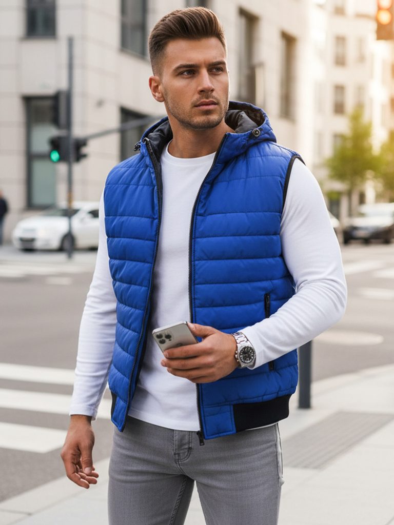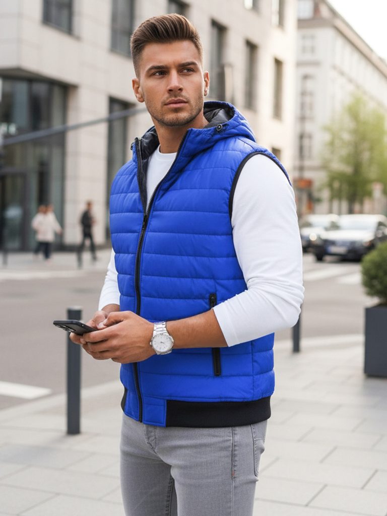 Prošívaná vesta s podšívkou a kapucí se zapíná na klasický zip. Vesta má dvě vnější kapsy na zip. Kapuce není odnímatelná, lze ji upravit pomocí stahovací šňůrky. Spodní část a průramky jsou zakončeny elastickým lemem. Vestu doporučujeme kombinovat s džínami z naší nabídky.