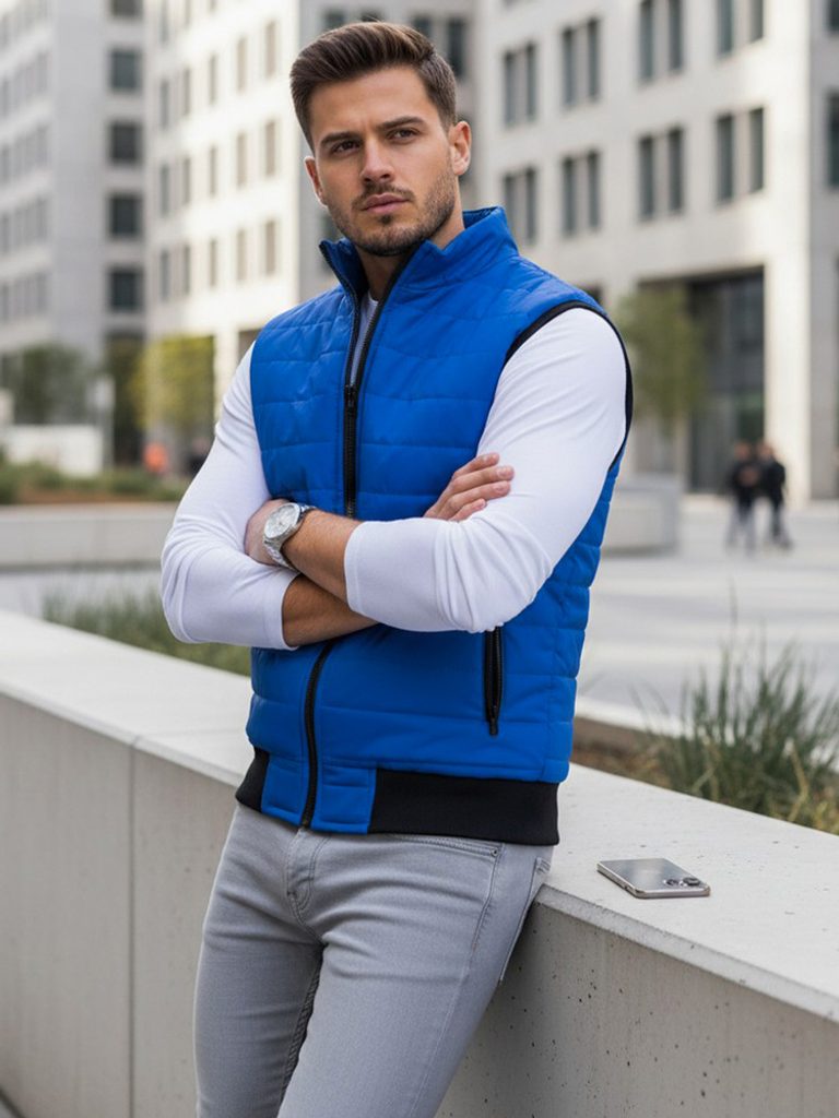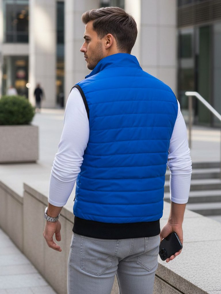 Prošívaná vesta bez kapuce disponuje zapínáním na zip. Vesta obsahuje dvě vnější kapsy na zip. Otvory na ruce jsou ukončeny elastickým lemováním. Spodní část je zakončena lemem. Součástí je podšívka a vyvýšený límec, který zahřeje. Model doporučujeme kombinovat s džíny z naší nabídky.