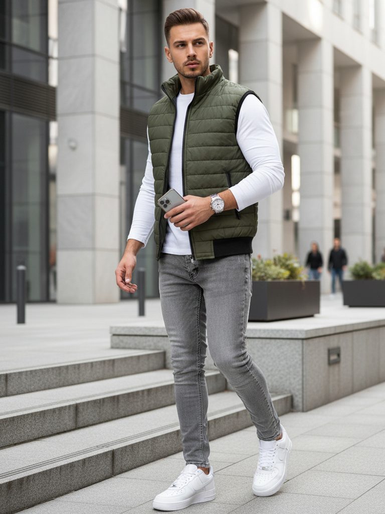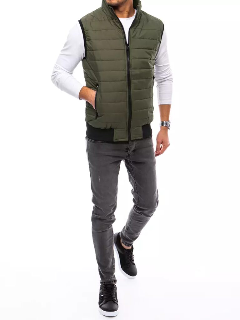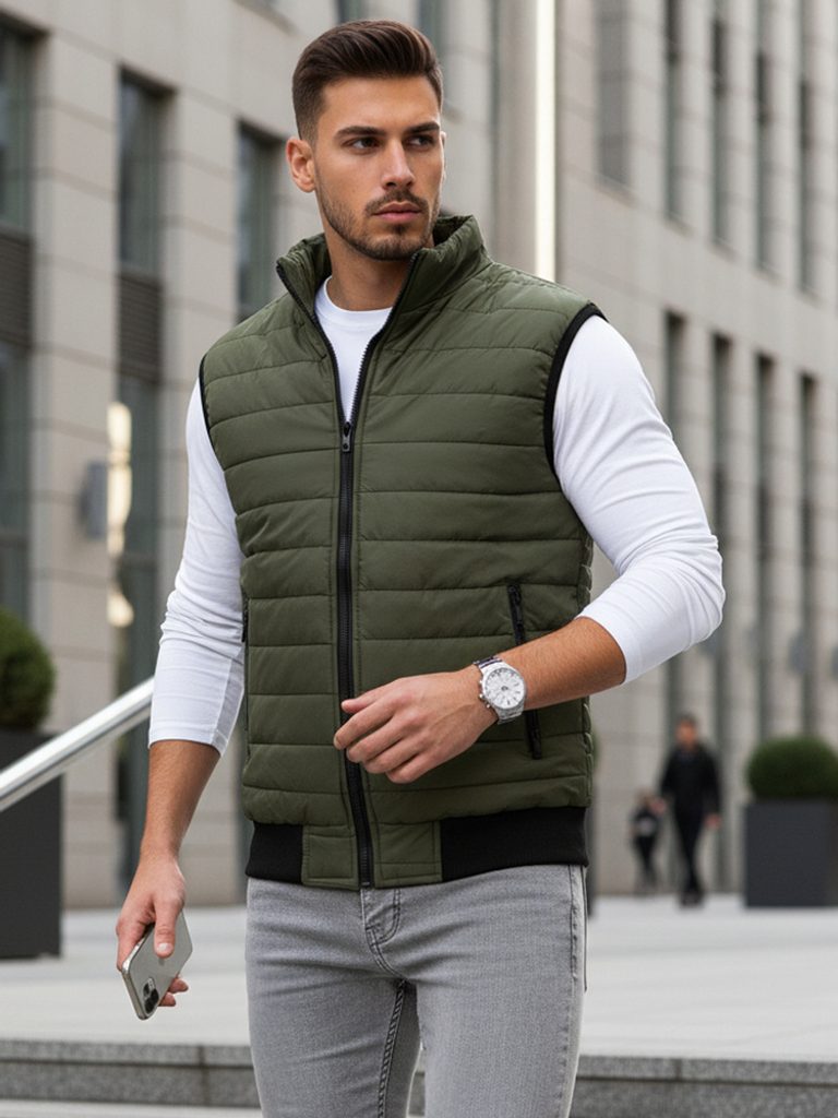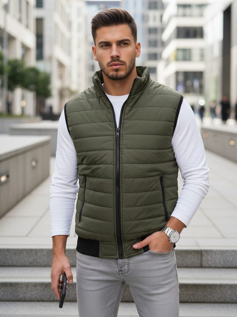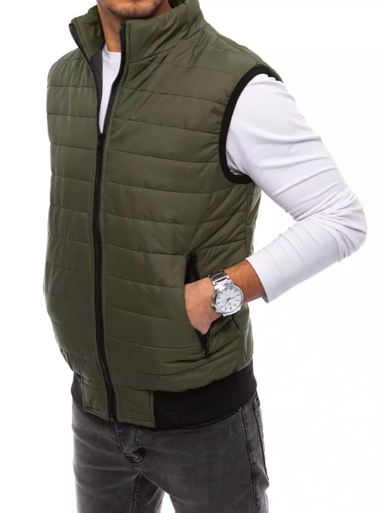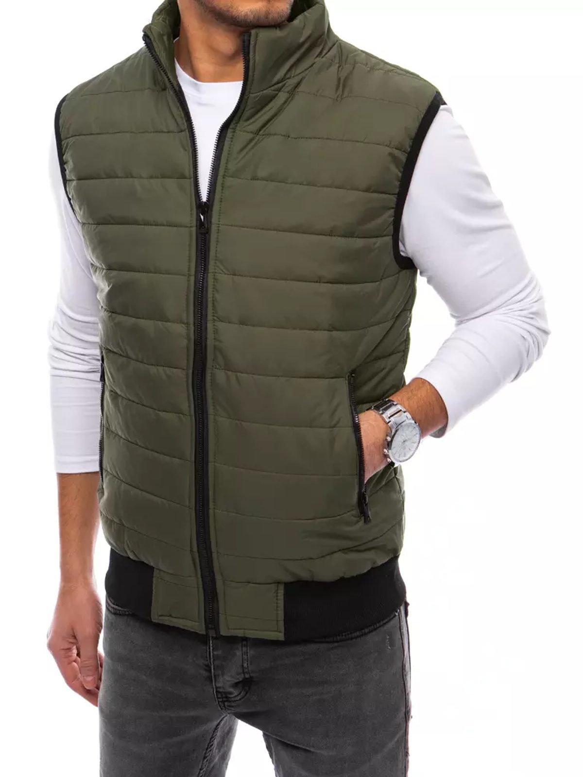 Prošívaná vesta bez kapuce disponuje zapínáním na zip. Vesta obsahuje dvě vnější kapsy na zip. Otvory na ruce jsou ukončeny elastickým lemováním. Spodní část je zakončena lemem. Součástí je podšívka a vyvýšený límec, který zahřeje. Model doporučujeme kombinovat s džíny z naší nabídky.