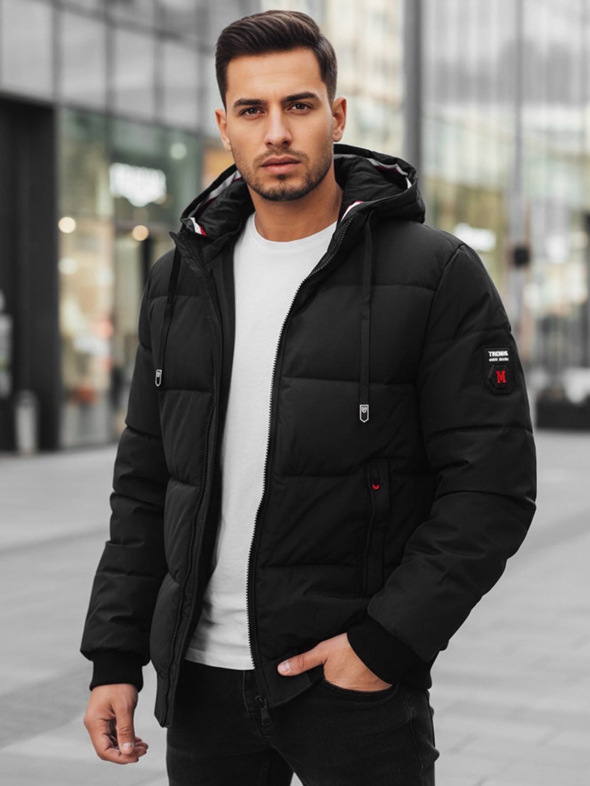 - kapuce je odnímatelná, nastavitelná pomocí stahovací šňůrky